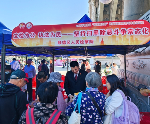 为推动宪法深入人心,不断提升扫黑除恶斗争法治化、规范化、专业化水平,2025年11月29日上午,我院普通犯罪和重大犯罪检察部联合大良检察室参加顺德区“宪法宣传周”暨扫黑除恶斗争宣传活动,通过设置普法摊位,现场向市民朋友宣传宪法、反邪教、禁毒、反酒驾醉驾、防诈骗等相关法律知识,增强群众尊法、学法、守法、用法的意识。